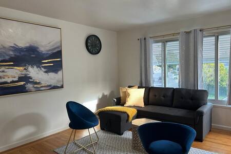 This is a newly remodeled unit. A comfy and cozy place to stay. Our location is close to the Airport, Caltrain, Bus, downtown San Bruno, Costco & Tanforan mall. Two Bedroom with queen size bed, a sofa bed in the living room and 1 Bath. With Free parking. Caltrain is just a block away. Pets are welcome for approval for $30 per night per pet.
