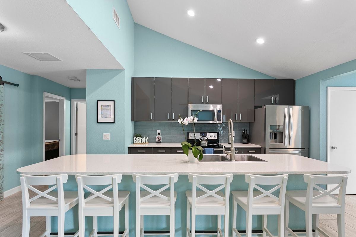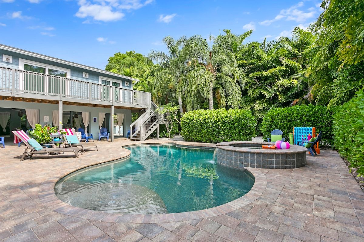 Escape to Crystal Beach Paradise, a spacious 6-bedroom retreat on Florida's Gulf Coast. This stylish getaway features a private saltwater pool, outdoor bar, and two well-equipped kitchens. Just minutes from pristine beaches, it's perfect for family relaxation and adventure. Book now for a memorable coastal retreat!