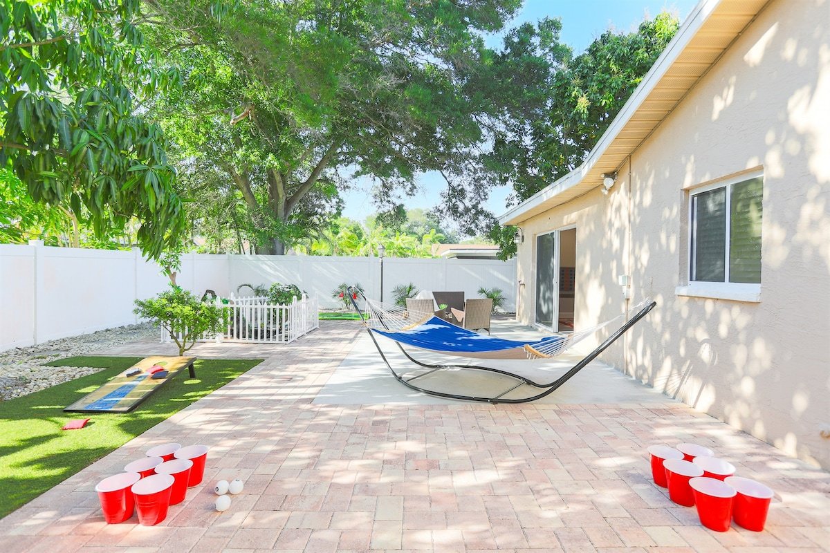 This is a beautiful fully renovated home with 3 bedrooms and 2 bathrooms. It has a great living area with a large flat screen smart TV and plenty of seating spaces, a state of the art kitchen, a charming dining room, a game room and a spacious outdoor area.