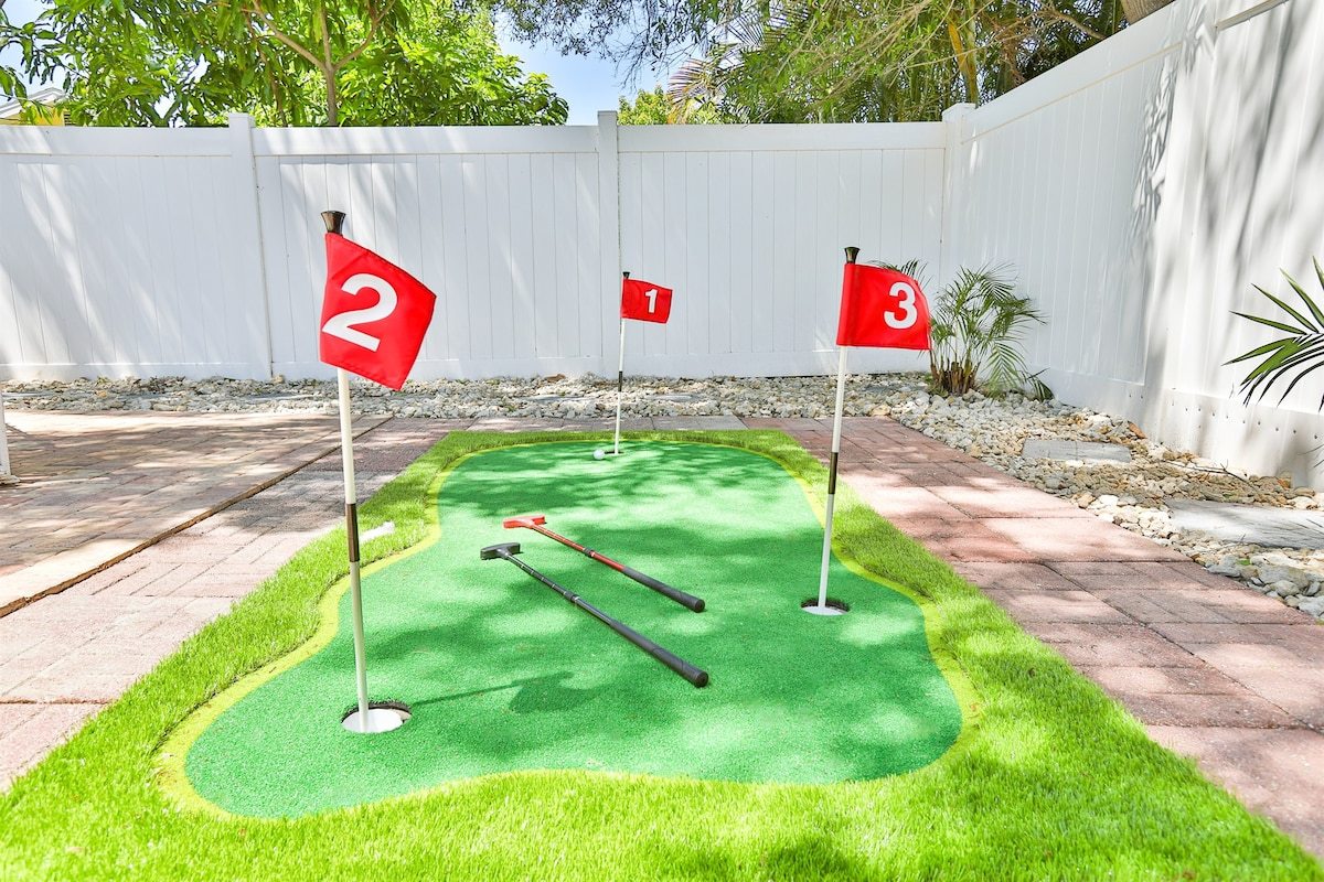 • Minigolf putting green with balls and clubs