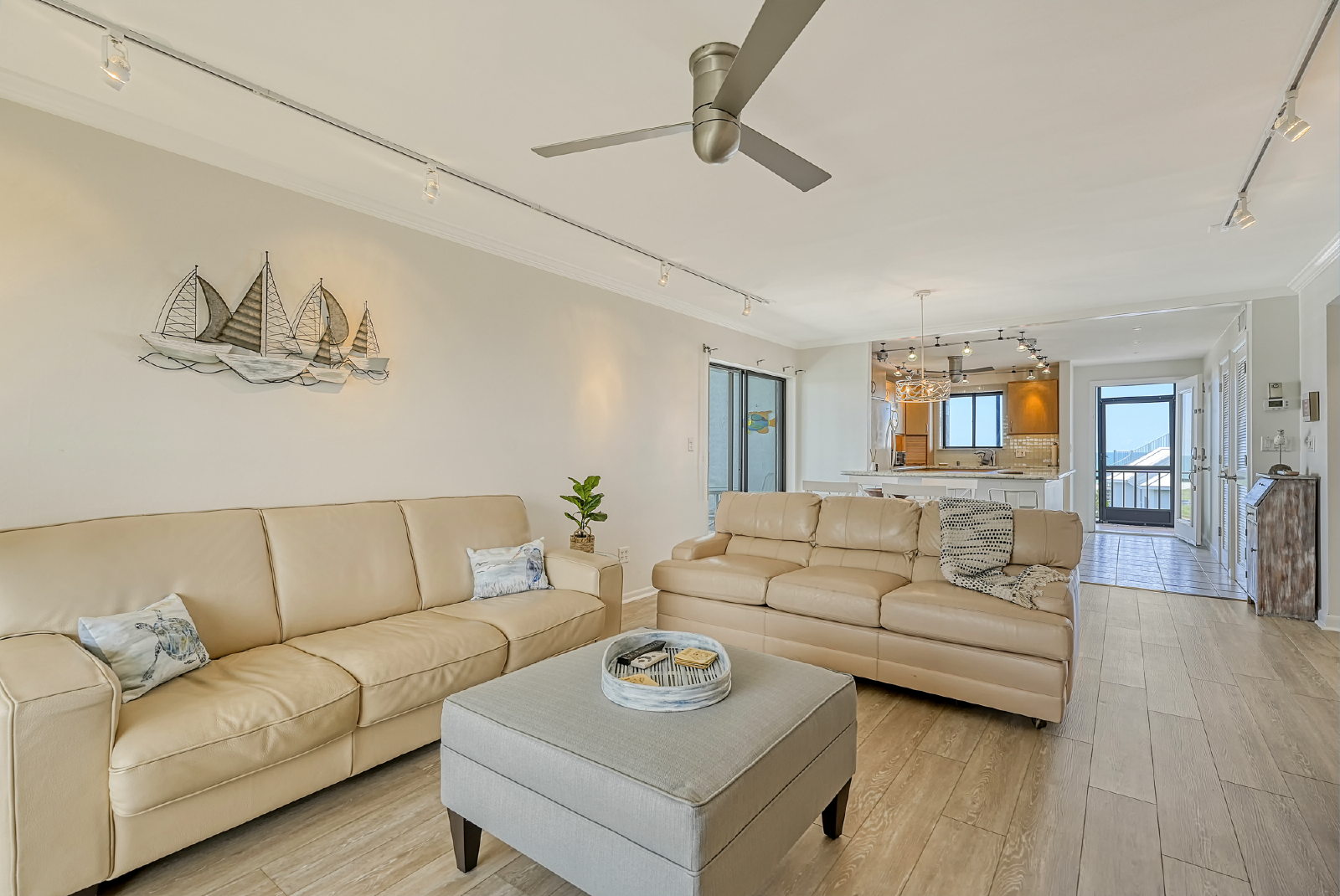 Inside, enjoy a fully updated kitchen featuring newcabinetry, stainless steel appliances, and quartz countertops—perfect forpreparing meals after a day at the beach. The open-concept living and diningareas are flooded with natural light and open onto three private porchesoverlooking the water, making indoor/outdoor living effortless.