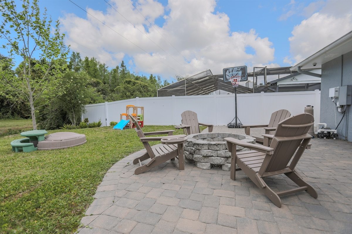 Sunset Poolhouse | Pool, Firepit, Playset, Games