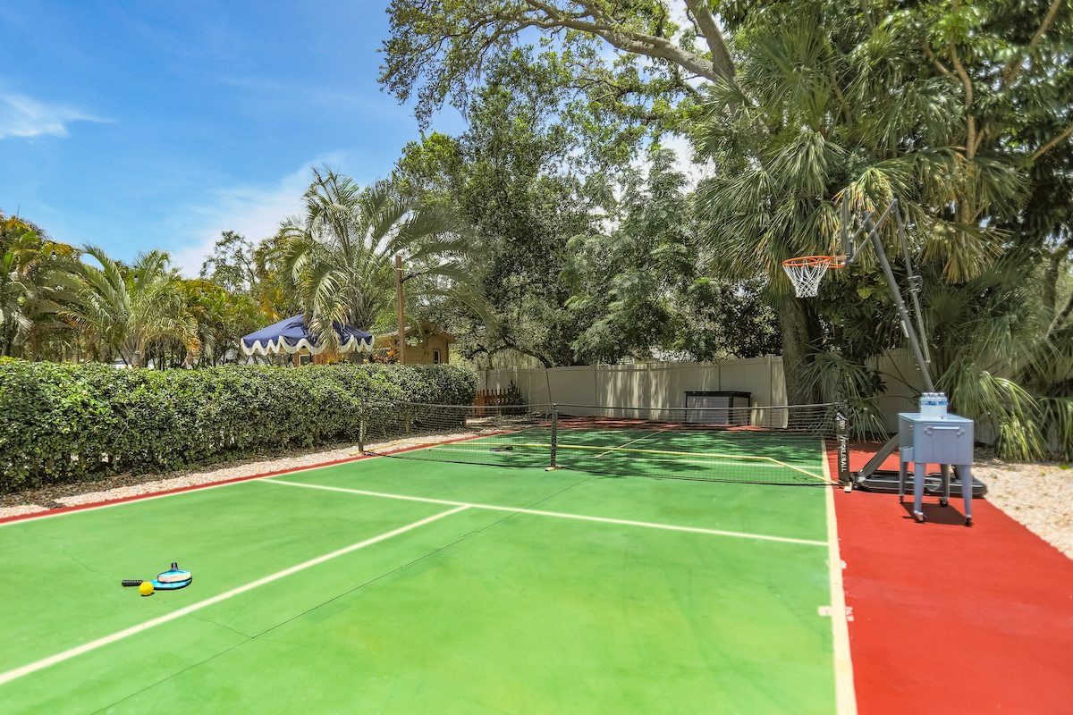 Welcome to Tuscan Breeze Manor—an elegant 4,400+ sqft estate in Palm Harbor on 1.3 acres. Enjoy 4 bedrooms, 6 bathrooms, a private movie theater, game room with pool and poker tables, PS4 and spacious indoor living. Outdoors, relax by the pool, cook in the outdoor kitchen, play pickleball, or let your dog roam the fenced dog park. Just 5 minutes from Honeymoon Island, this is the perfect luxury getaway for families and groups that want an unique and private resort experience.