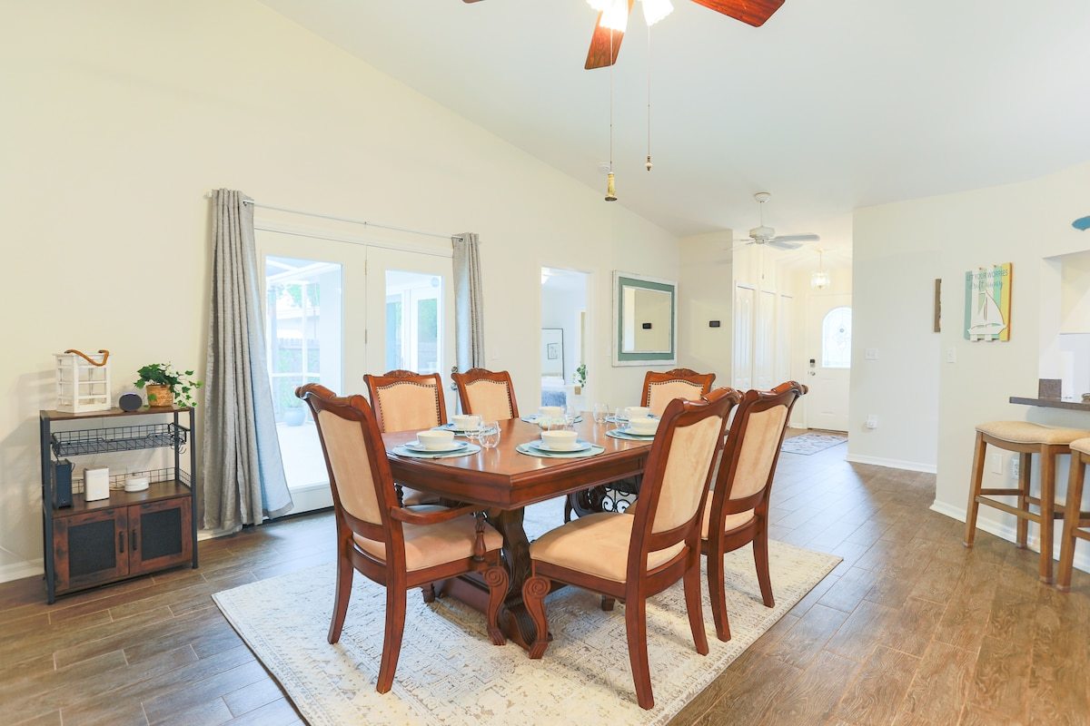 Welcome to Salty Tide Getaway — your renovated oasis in sunny Palm Harbor, FL! Relax in the lounge chairs by the private and fenced pool, grill out on the patio, or unwind in the spa-style bath. Just minutes from beaches, parks, and local dining, this 3 bedrooms, 2 bathrooms escape is perfect for families or friends seeking fun and comfort. Enjoy fast Wi-Fi, smart TVs, a fully stocked kitchen, and cozy coastal vibes throughout. Your Florida getaway starts here!