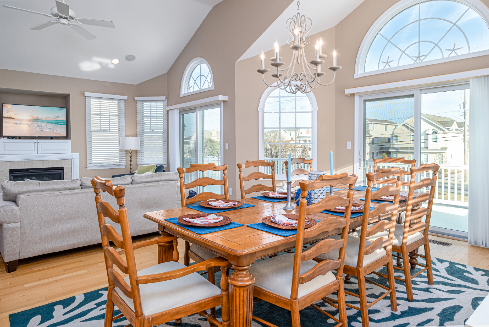 Situated 2 short blocks to the beach, 1 block from a playground with tennis, basketball and bocce courts, and a few blocks from restaurants and shops along Dune Drive, this beautifully appointed home is a perfect place to experience everything about Seven Mile Island. It's also outfitted to impress, with abundant living space inside and out, board games, lawn games, beach gear and five bikes for guest use.