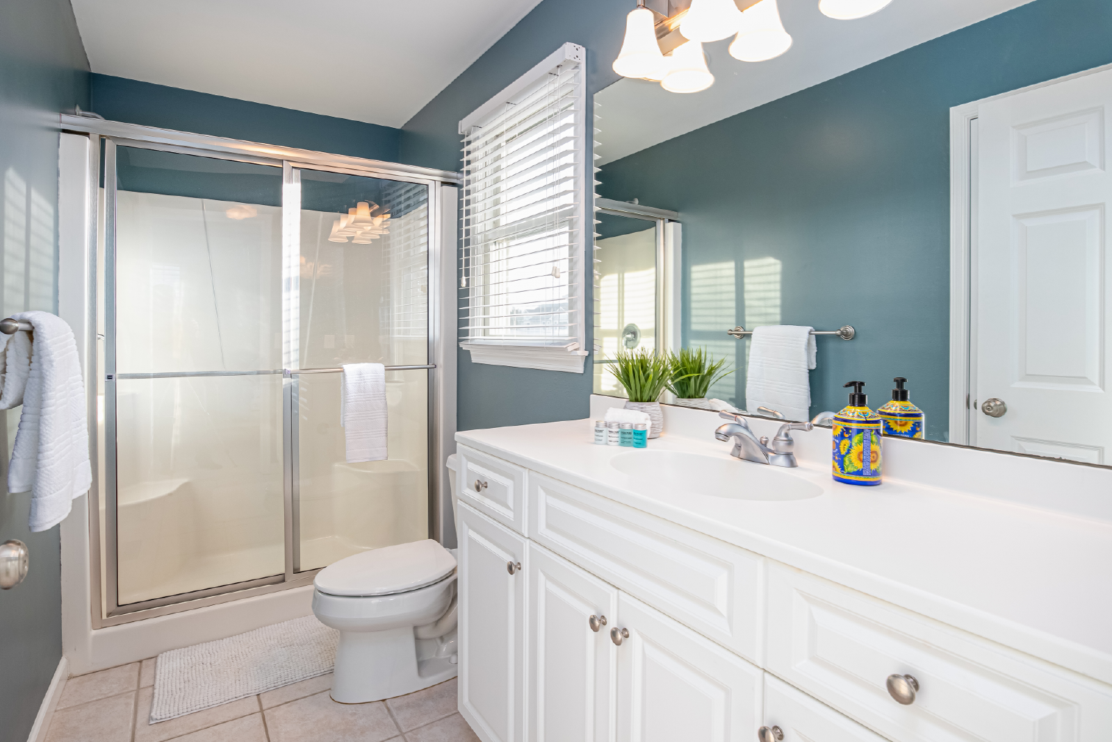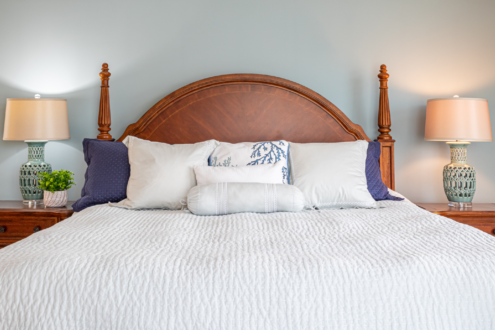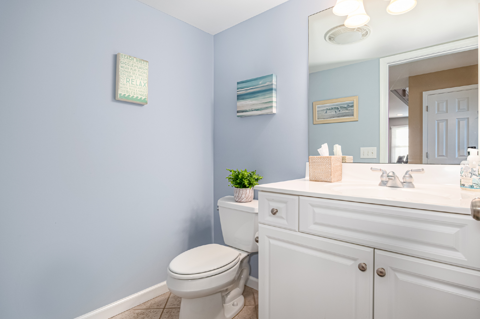 Up on the third floor, you're welcomed into the luxurious Main Suite. This huge space boasts a King bed, enormous closet, and a bathroom with double vanity, shower and jetted tub. The Main Suite also has sliding glass doors that lead out to a private deck that overlooks the rear yard - a perfect place to start the day with a quiet cup of coffee, or take in the beautiful sunsets in the evening.