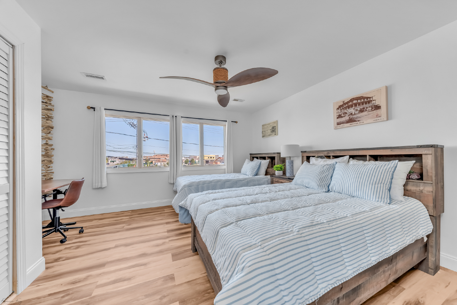 “This is a great spot for a family or friend vacation. We were in town for a wedding, and it was great to have enough bedrooms and bathrooms for everyone. The two smaller rooms downstairs could use some updating, but all of the spaces were beautiful, comfortable, and cozy. Mara was very responsive and helpful. There is some road noise, but it isn’t noticeable with the windows closed. This location is within walking distance of the beach and many shops and restaurants. Great stay and would definitely recommend and stay again!”