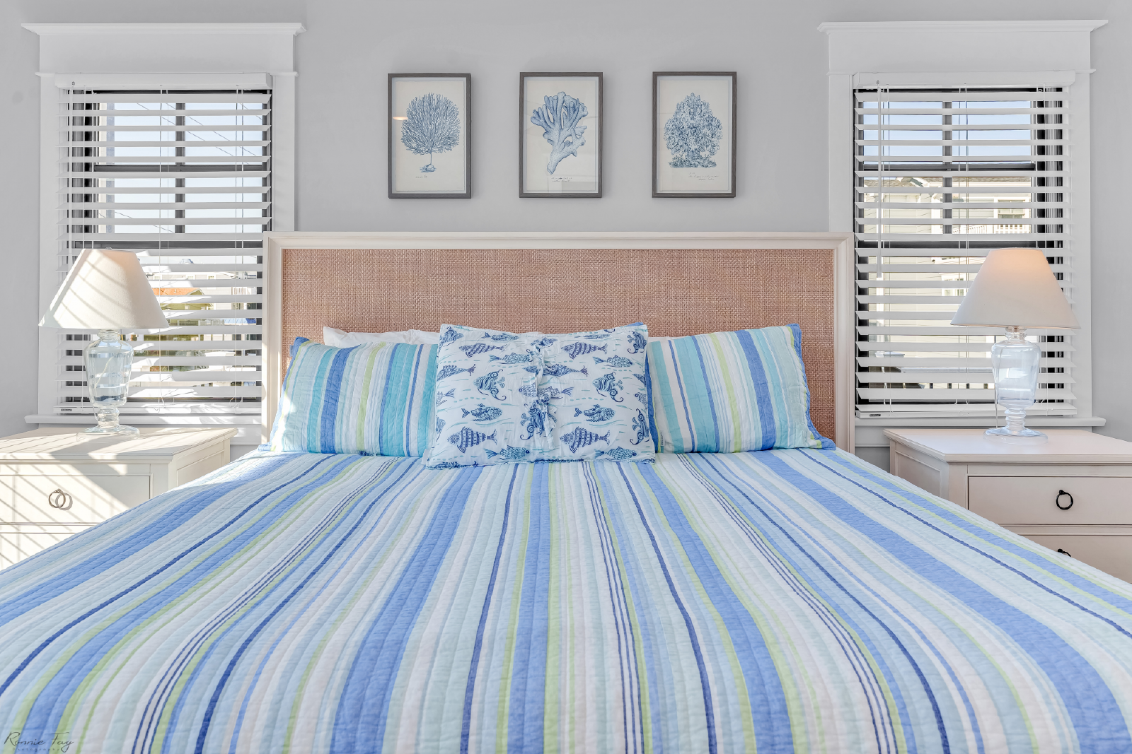 This gorgeous home, built in 2020, is professionally decorated with every detail in mind. Three floors of luxury living offer six bedrooms to comfortably sleep 15 guests. 6.5 bathrooms, a beautiful outdoor shower, an elevator and a grill round out some of the amenities guests will enjoy at “Saltwater Vista”.