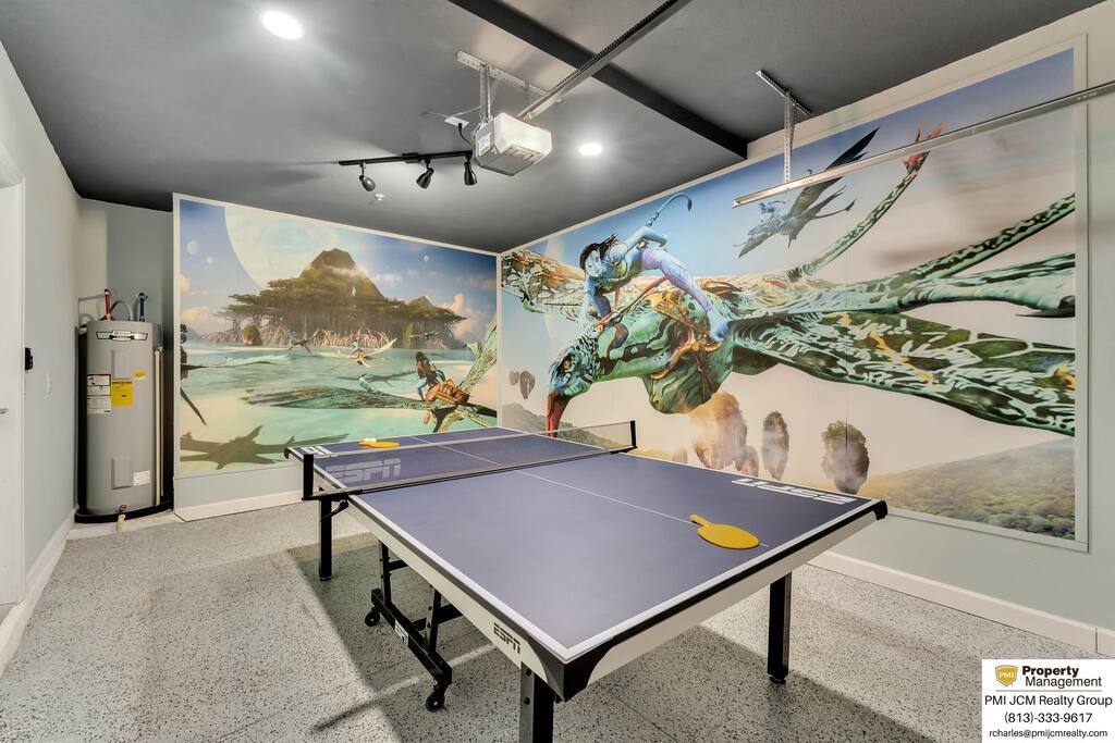 Have fun with the whole family at this stylish place. Just minutes from Disney World this income producing property is in one of Orlando's Top Resorts Disney Themed little ones Bedroom with 4 Bunk-Beds, 2 king size bedrooms and an Avatar Themed Garage conversion with a ping pong table. Visit Our Clubhouse for Daily Activities, 200, 000 Gallon Heated Pool and Jacuzzi, Heated Lazy River, Water Slide, Fitness Center, SPA, Free Movies in Theater All Day Everyday and Much More!