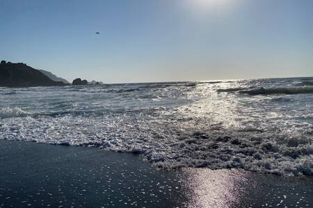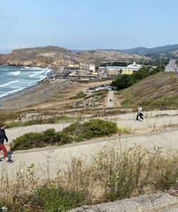 Our beautiful home is located in Pacifica which is known for beautiful coastline, breathtaking vistas, rocky bluffs and miles of sandy beaches. This listing is a private room with queen size bed and private ensuite bathroom in a co living house. The house is located on nearby beaches good for vacation with your family and friends. The house also comes with shared kitchen where in you can cook and relax outside in our back yard. Very good and safe house for travel nurses to stay.
