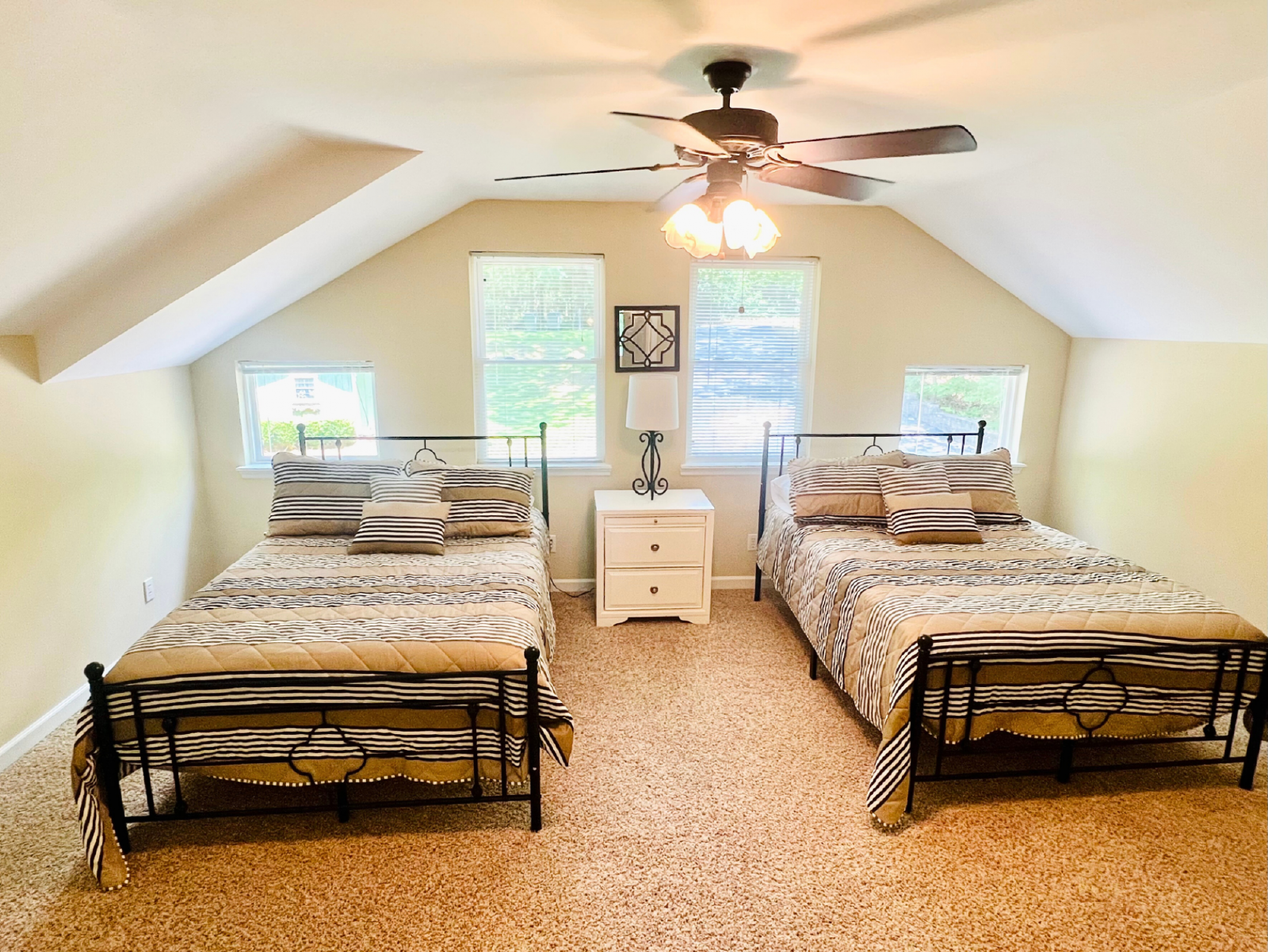 Built in 2007, this expansive retreat spans 2120 square feet, providing ample space for relaxation and comfort. It features 3 bedrooms, two on the ground floor, each with a private bathroom for maximum privacy. The loft area accommodates 2 additional beds, offering extra sleeping options. Although the loft doesn't have a bathroom, a full bathroom is conveniently located in the basement. Plus, there's a half bathroom in the hallway for added convenience.