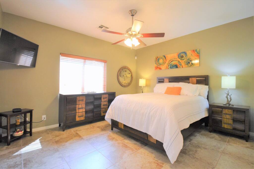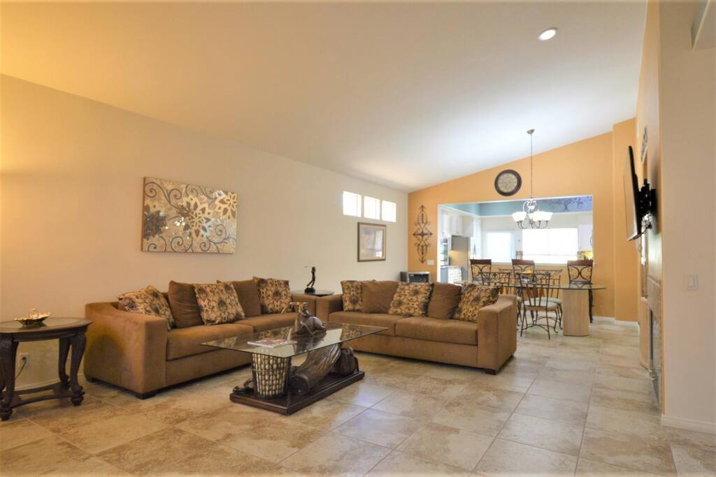 Furnished as a golfers dream get, this home is open and airy with a view of the 7th tee. Entry is via a private courtyard and the open floorplan consists of tiled floors in the main living areas with a gas fireplace between the living and dining spaces. The kitchen has a breakfast bar, stainless appliances, wine fridge, Keurig coffee-maker, and access to the rear covered patio, private pool/spa, grill, and expansive course views to relax and enjoy! There are 3 bedrooms--2 with full-bathrooms attached--and a guest bathroom, separate laundry room, and attached 2-car garage for your practical use and convenience. Just bring your vacation spirit and enjoy the comforts of home at the Lucky Horseshoe Golf Retreat!