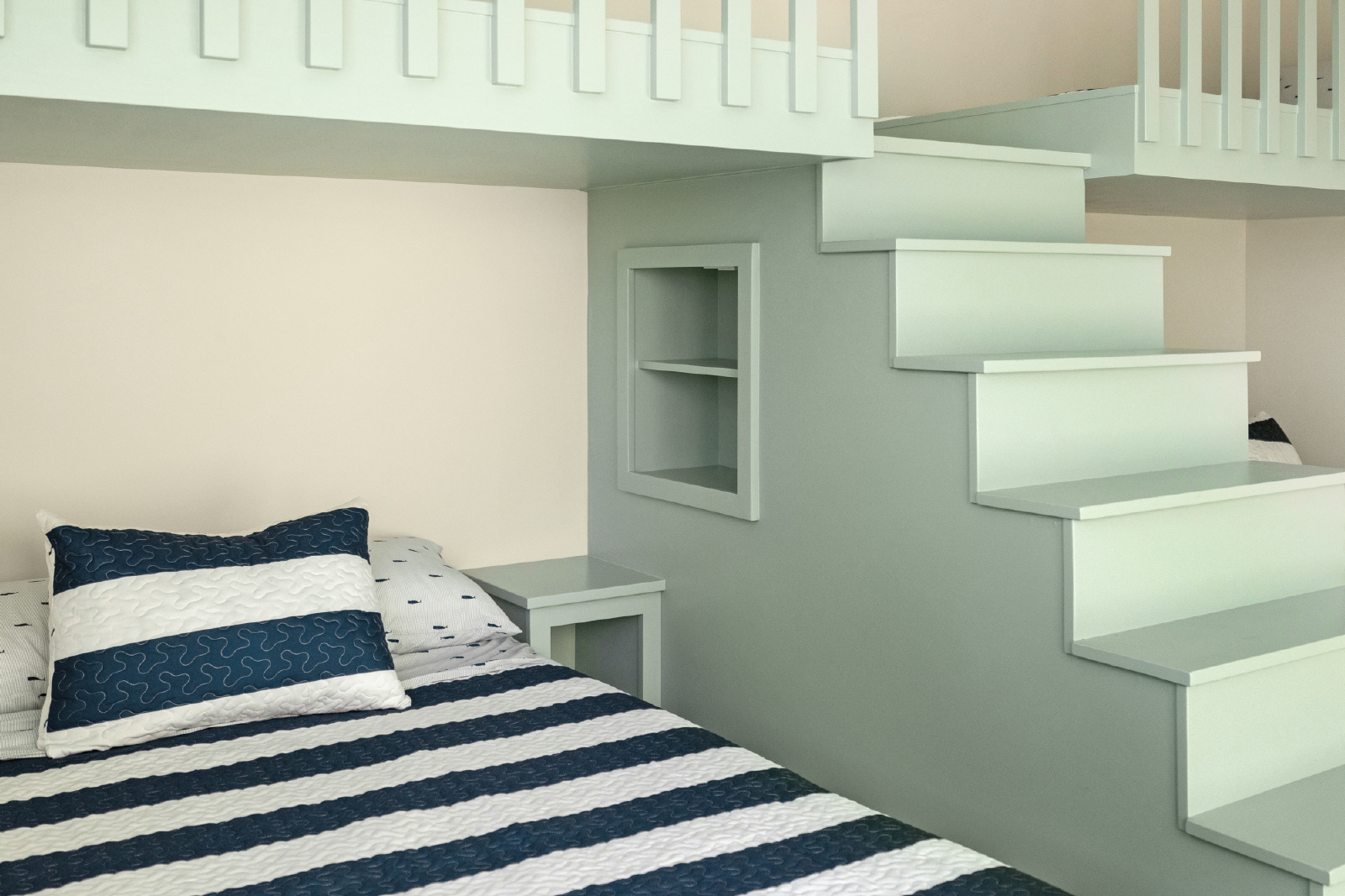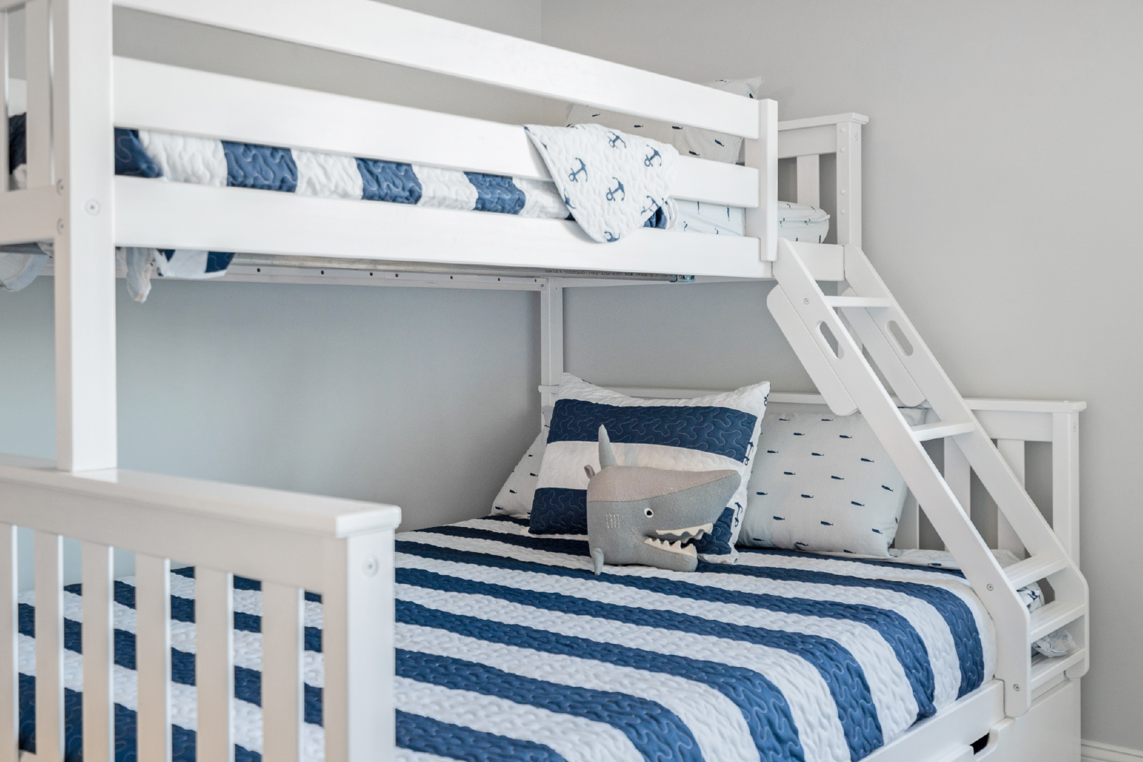 Bedroom 5 (First Floor): Bunkbed room with custom, built-in bunks: 2 Twin beds, over 2 Queen beds (4 beds total)