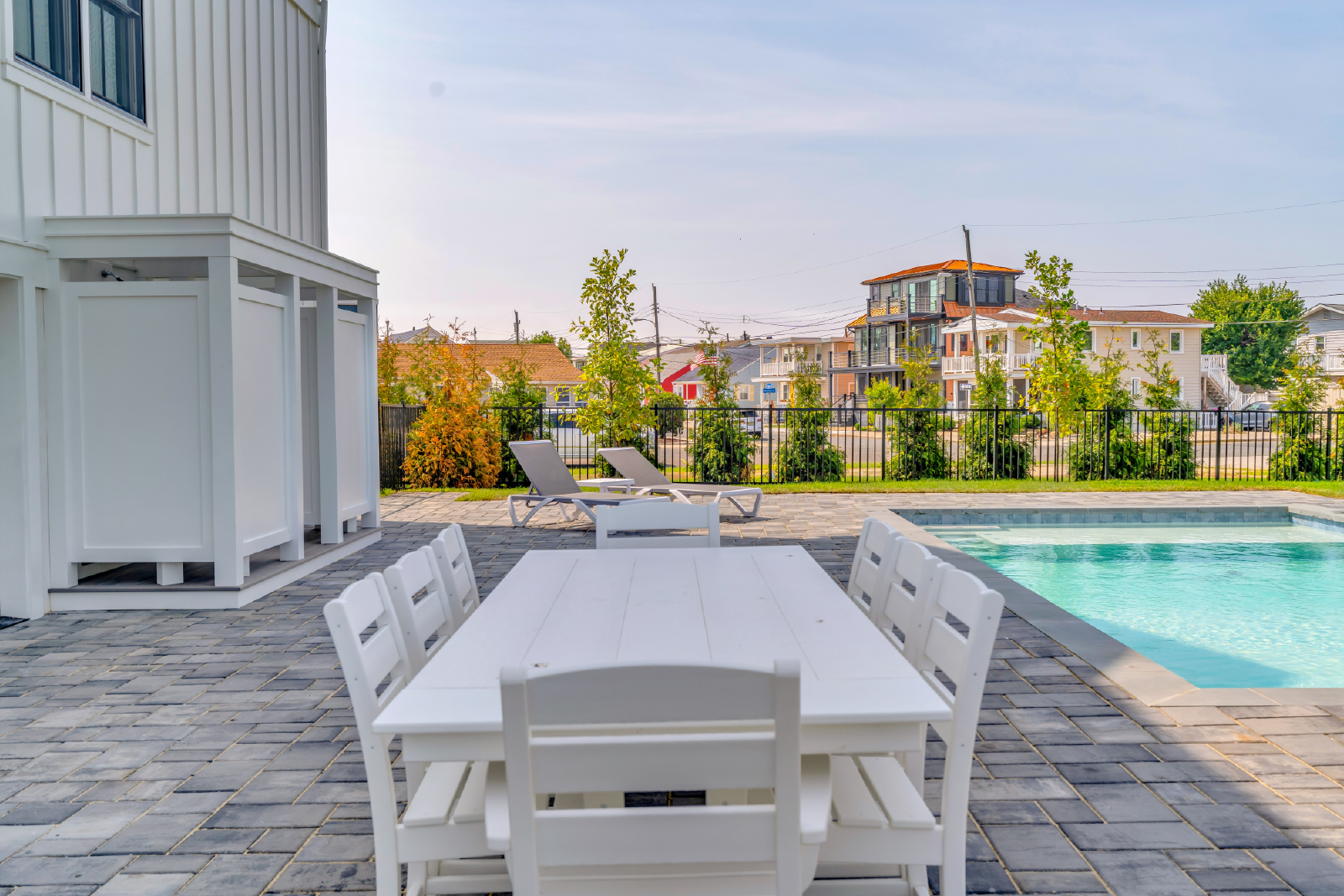 Tramonto, meaning “Sunset” in Italian, is a spacious, luxury custom home with serene panoramic views of the bay and Sunset Lake in Wildwood Crest. The home offers 6 bedrooms, 5 full and 2 half baths, and a heated in-ground pool surrounded by a large fenced in yard on a private spacious corner lot. Tramonto is perfectly located for your multi-family vacation in a quiet, family-friendly neighborhood. Enjoy being 4 blocks from the vast Wildwood Crest beach, next to Sunset Lake park which offers jet ski and paddle board rentals, walking distance to local coffee shops and restaurants, and a short drive to either Cape May for shopping and fine dining, or to the Wildwood boardwalk for endless amounts of fun.