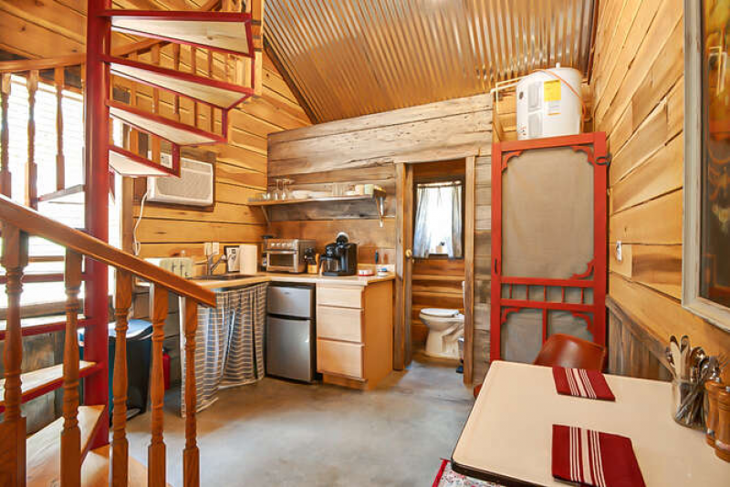 Take it easy at this unique rustic loft guesthouse attached off the horse stable in the beautiful countryside in Columbia, TN. A queen bed sits on top of a wooden loft platform with a winding staircase. On the main floor you’ll find a kitchenette, dining table for two and a day bed. Nestled amongst 6 acres, which is home to chickens and very friendly goats!