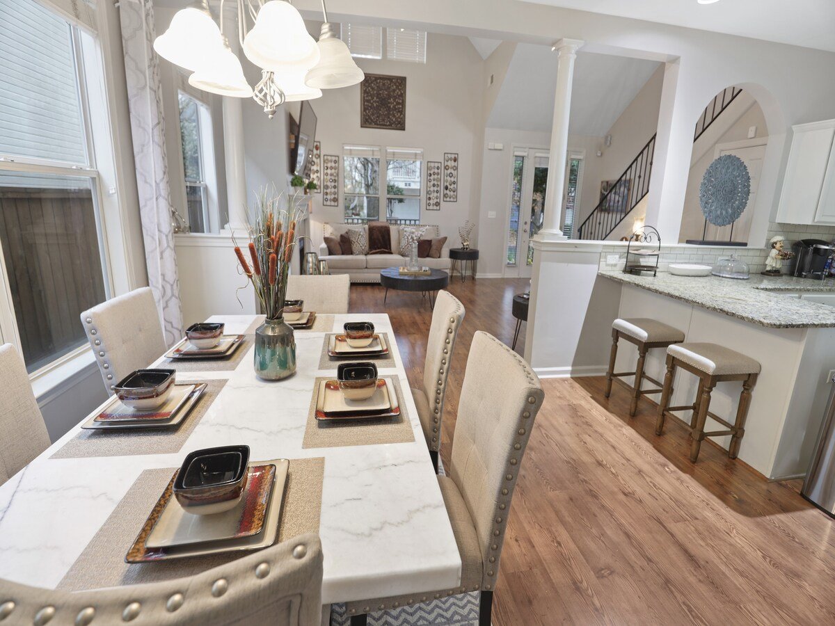 Enjoy a comfortable and delightful vacation in this brand-new three-bedroom and two and a half bathrooms house located on the Mississippi River's tut banks, merely a few blocks distant from cafes, restaurants, and bars. Prepare your favorite dishes and spend quality time with your family in the luminous eat-in kitchen and stylish dining area. Work in the designated workspace with comfort while the children or other adults amuse themselves in the game room.