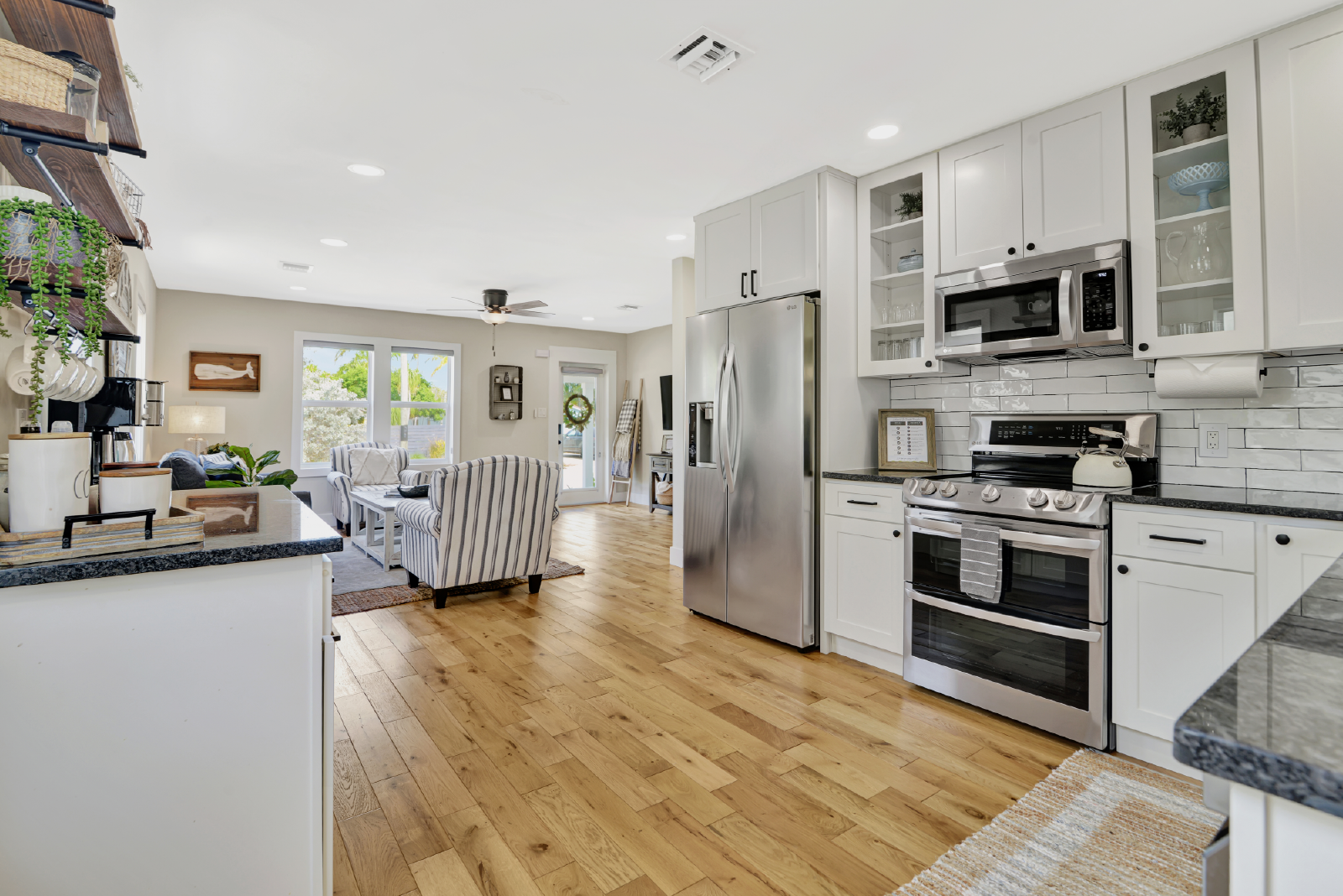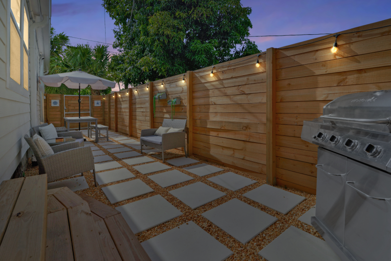 This 2 bed/1 bath completely renovated bungalow can sleep up to six, features brand new high-end furnishings, and sits in a quiet neighborhood two blocks from the intracoastal. The coastal cottage style bungalow includes a washer/dryer, fully stocked kitchen, smart TVs, luxury linens, and upscale coffee bar. Perfect for families, business travelers, or a romantic getaway. Private entrance with keypad, fenced in yard with dining space and BBQ grill.Come enjoy this coastal retreat!